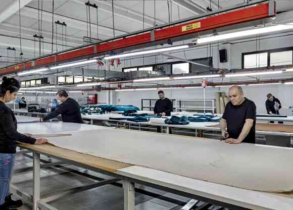 Kumaşları, kendi kontrol makinelerinde inceleyip yıkama ve çekme testlerinden geçirerek kesime hazır hale getiriyoruz.